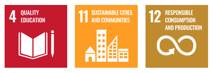 It is understood that these SDGs are not independent from each other. Our main focus might be SDG 12 (Responsible Consumption and Production), but we also touch SDG 4 (Quality Education), SDG 11 (Sustainable Cities and Communities), SDG 13 (Climate Action), SDG 14 (Life Below Water), and SDG 15 (Life On Land).